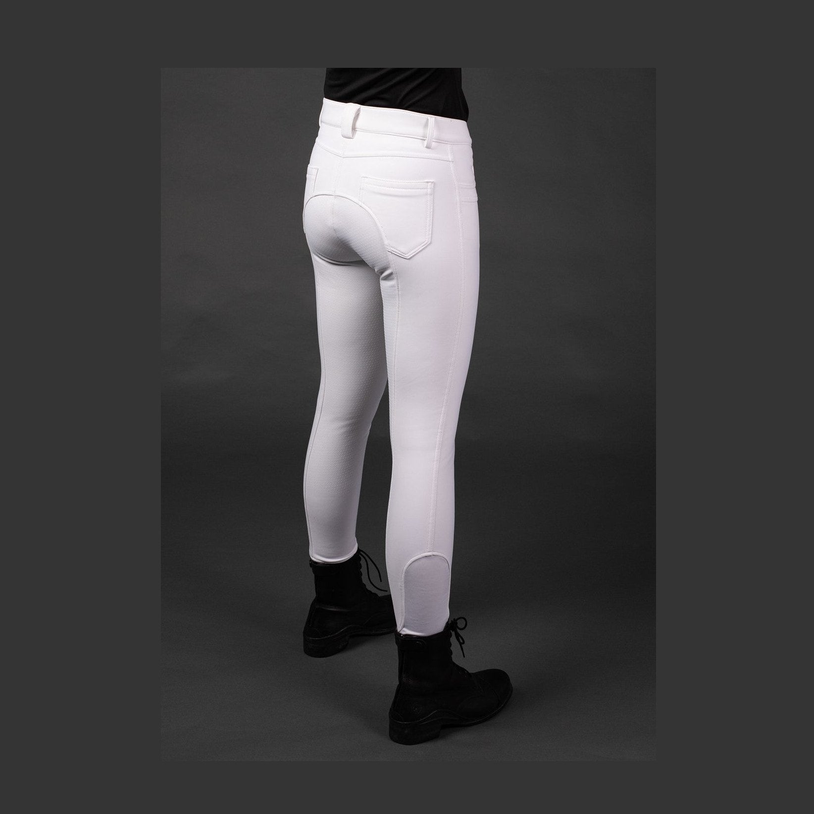 Waterafstotende rijbroek met rondgenaaid zitvlak voorzien van siliconen grip, twee kontzakken en "Flexlegs". Subtiel afgewerkt met sierstiksels en riemlusjes. Fijne 4-way stretch softshell stof met fleece aan de binnenzijde. Ideale broek voor de winter.