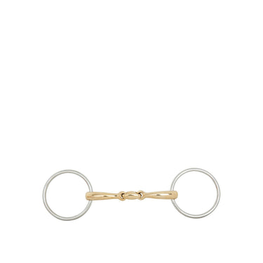 Deze kwalitatief hoogwaardige dubbel gebroken watertrens is vervaardigd van massief Cuprigan met roestvrijstalen ringen. Cuprigan is een legering bestaande uit 89% koper, 7% aluminium, 3% ijzer en 1% zink Het oxidatieproces van het materiaal geeft een prettige geur en smaak. De anatomische vormgeving volgt de vorm van de paardenmond, waardoor een zachte en gelijkmatige drukverdeling ontstaat. Door de combinatie van de vormgeving en de unieke samenstelling van Cuprigan, wordt het kauwproces en de speekselvorming gestimuleerd, waardoor er een fijne verbinding kan ontstaan met de gevoelige paardenmond. Het bit heeft een zachte inwerking op de mond. Het mondstuk heeft een dikte van 16 mm en de bitringen hebben een diameter van 70 mm. ??