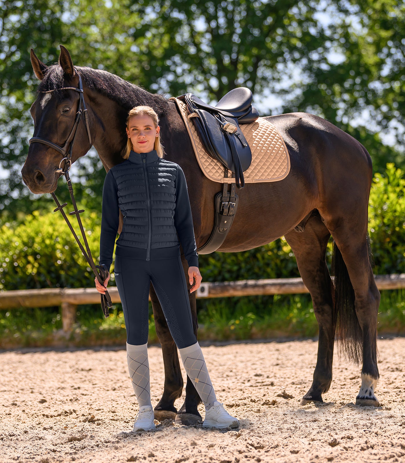 Klassieke rijsokken met een modern ruitpatroon