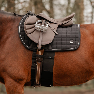 Der Bauchschutz verhindert Scheuern auf der Haut des Pferdes. Ideal für geschorene Pferde oder Pferde mit empfindlicher Haut. Einfache Befestigung am Sattel mit Clips an der Vorderseite. Produktspezifikationen: < Schützt die Haut vor Scheuern. Kann bei Pferden verwendet werden, die gerade geschoren wurden oder empfindliche Haut haben. 2 Clips an der Vorderseite, mit denen Sie die Bandage am Sattel befestigen können. Maschinenwaschbar bei 30 Grad. Material: < 60 % Polyester, 40 % Elastan