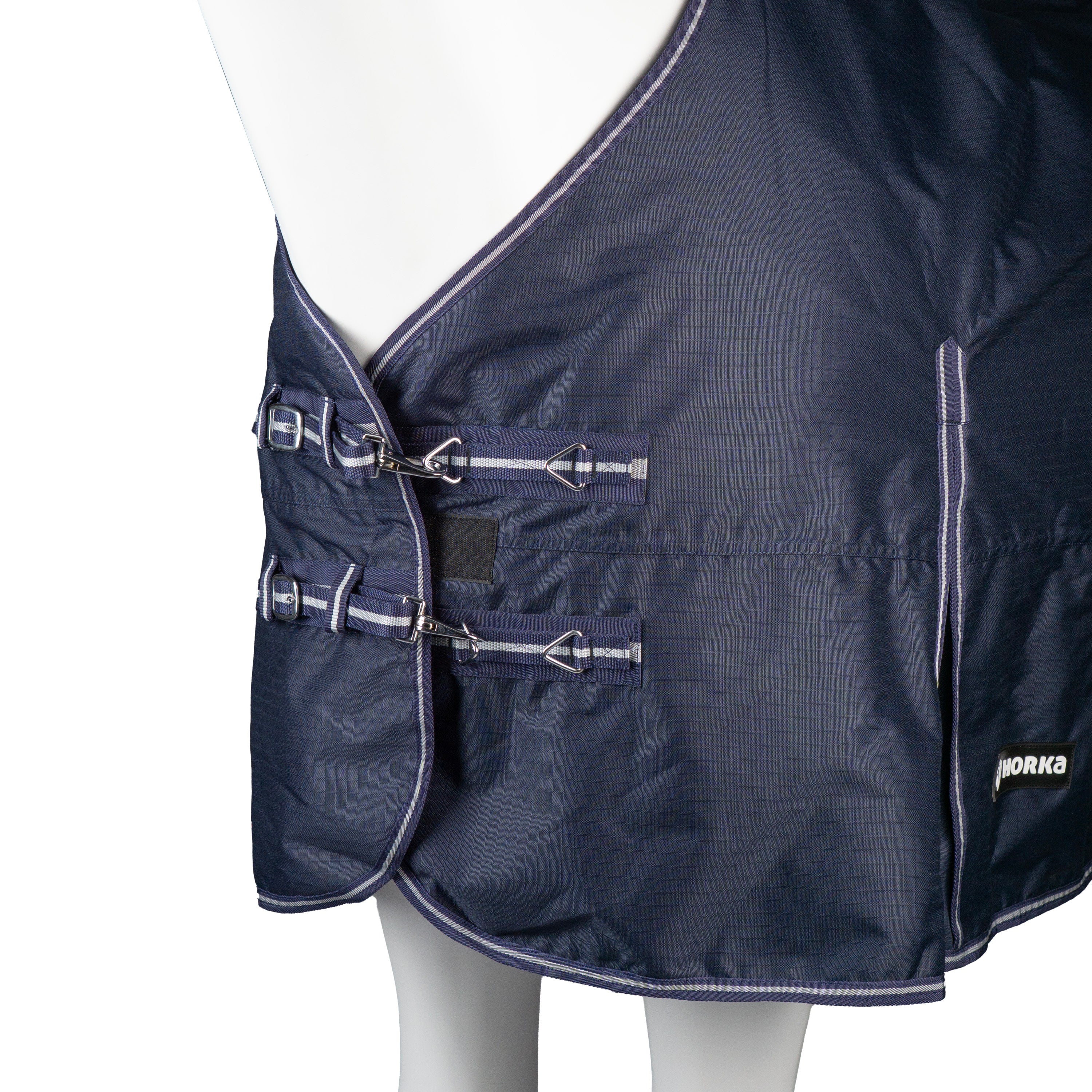 200 g schwere Decke mit Widerristschutz, doppeltem Brustverschluss, Kreuzbegurtung und abnehmbaren Beinschnüren. Produktspezifikationen: 600D Ripstop-Polyester, 3000 mm wasserdicht und 3000 mvp atmungsaktiv, 200 g Polyesterfüllung, Futter, doppelter Klettverschluss auf der Brust, Kreuzbegurtung mit elastischen Enden und Gummistoppern, abnehmbare Beinschnüre, Widerristschutz.