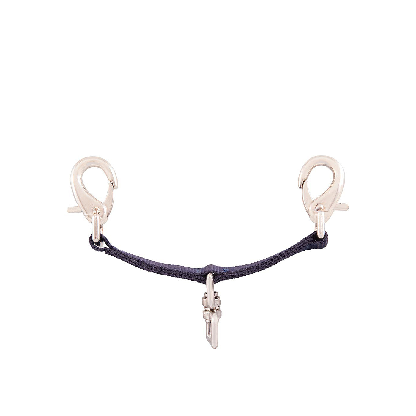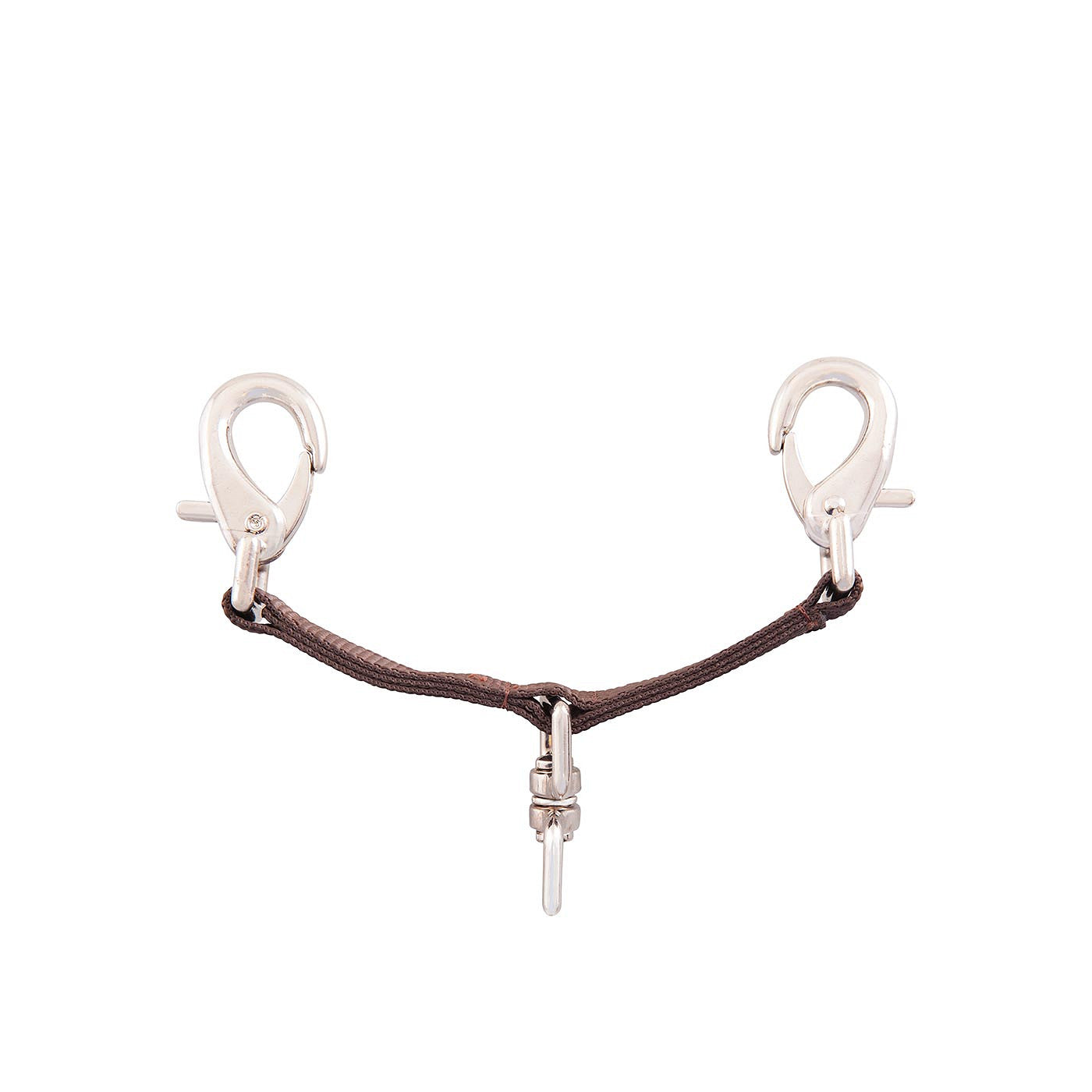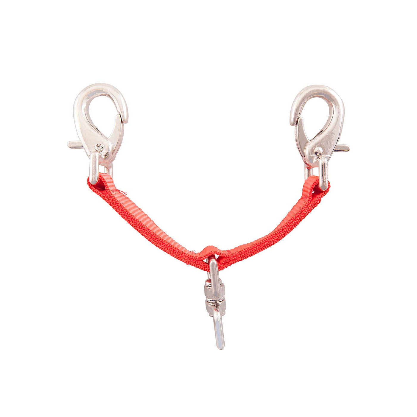 Longe-Mittelstück aus Perlon. Das Longe-Gebissstück ist in der Mitte mit einem Wirbel versehen. Das Longe-Gebissstück kann mit zwei Clips am Gebiss oder am Halfter befestigt werden. Länge: 16 cm.