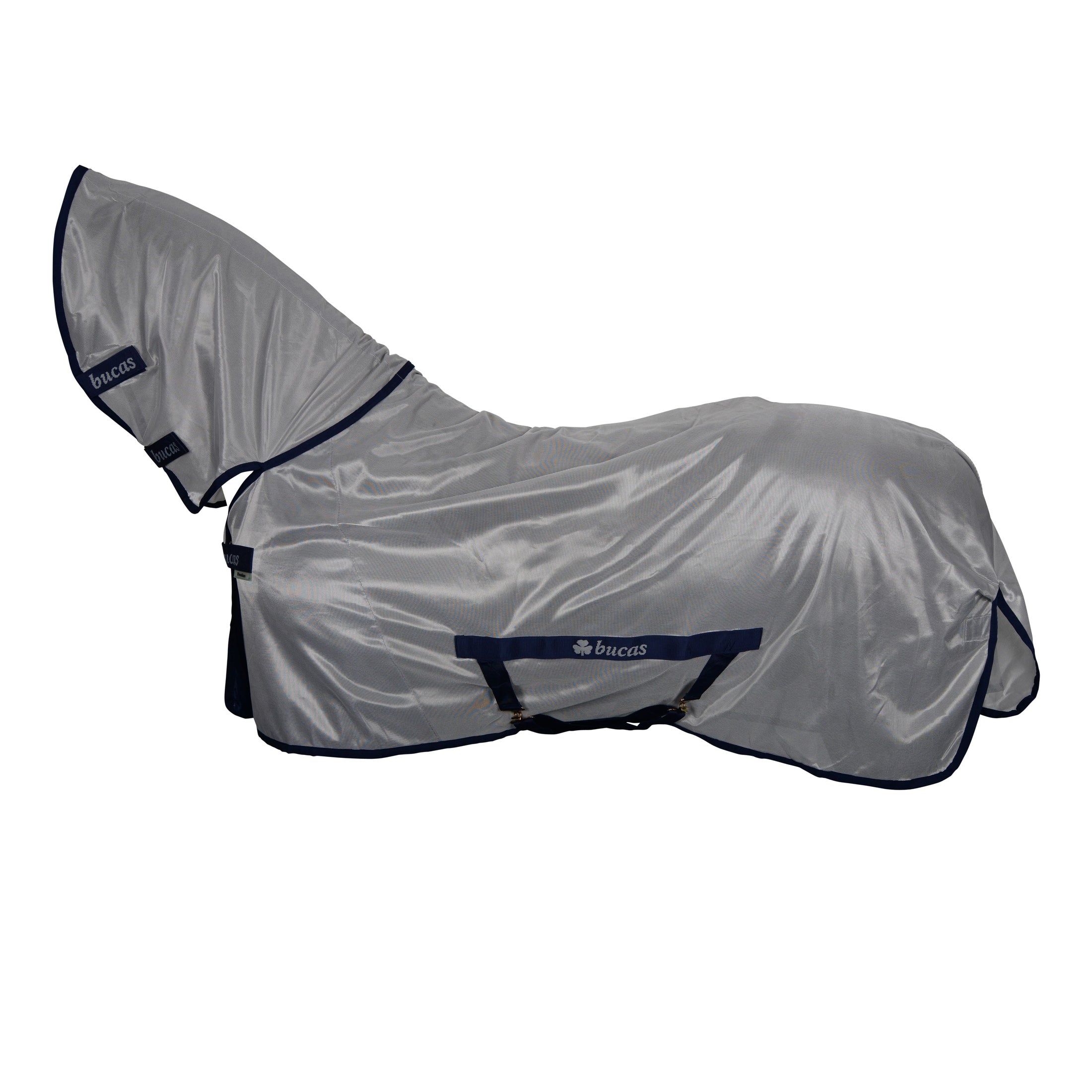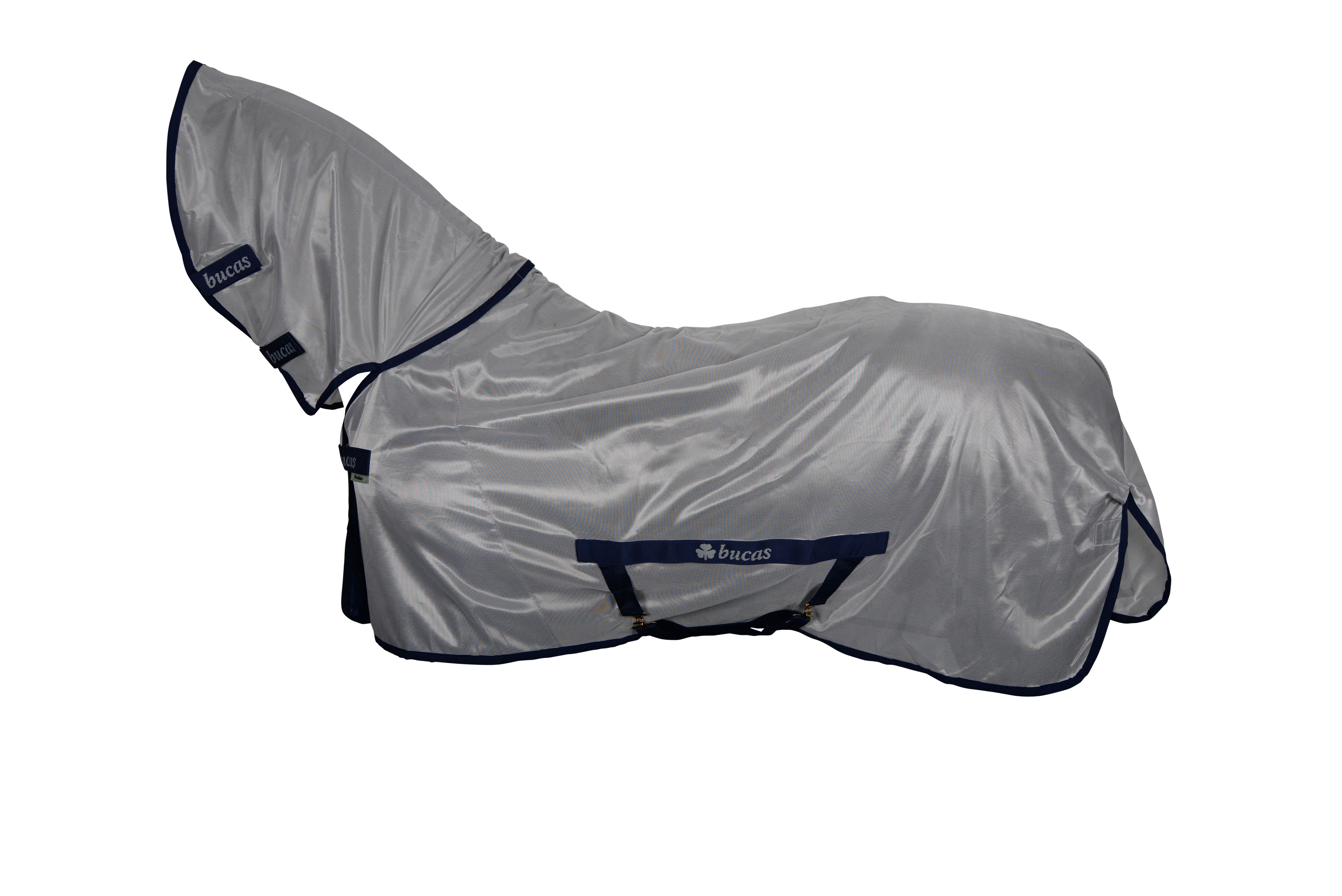 De Bucas Freedom Fly Sheet is een vliegendeken met een vaste hals. Deze deken is gemaakt van fijnmazig materiaal (polyester) om je paard te beschermen tegen de vliegen. De deken heeft een borstsluiting op de borst met een klittenband overlap, kruissingels die ervoor zorgen dat de deken op zijn plaats blijft, bevestigingspunten voor bilriemen (niet meegeleverd) en een staartkoord. Daarnaast heeft deze deken een grote staartflap die helpt de staart te beschermen. (Het masker is niet bij de deken inbegrepen).