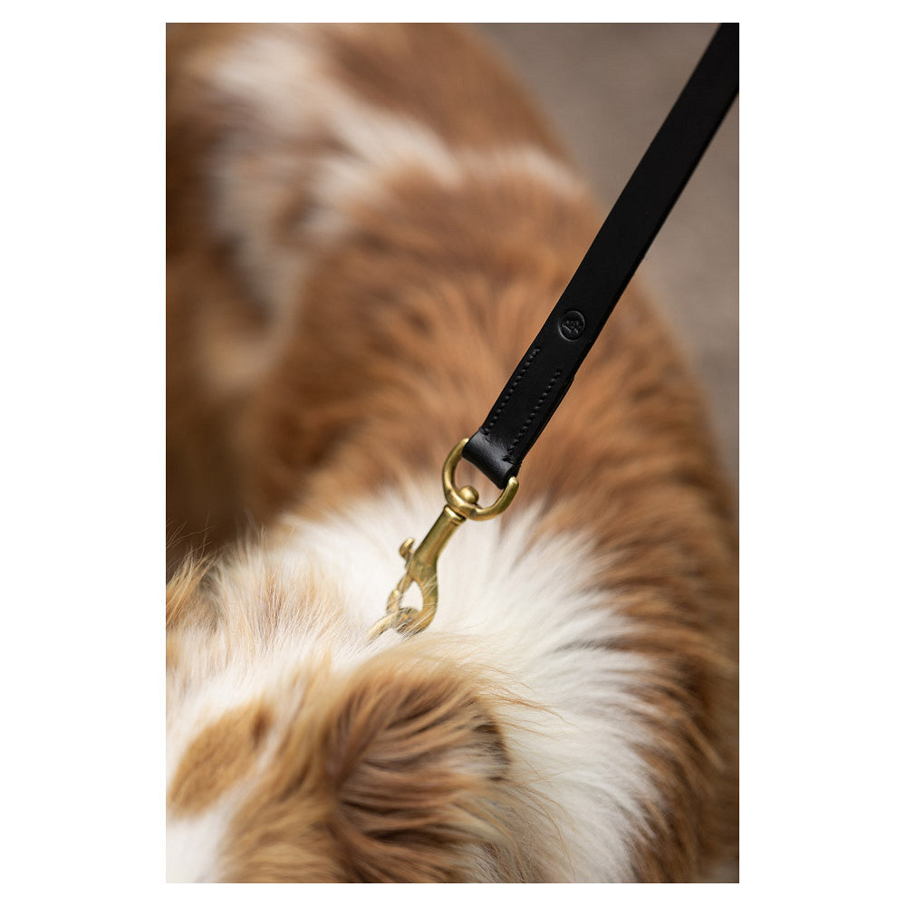 Deze mooie hondenlijn is enorm stevig en gaat lang mee. De lijn is gemaakt van glad leder en heeft aan de binnenzijde van het handvat een subtiel grippatroon zodat de lijn niet makkelijk uit je handen glijdt. Met de matglanzende musketonhaak aan het uiteinde maak je de lijn eenvoudig vast aan de halsband (artikel 471022).