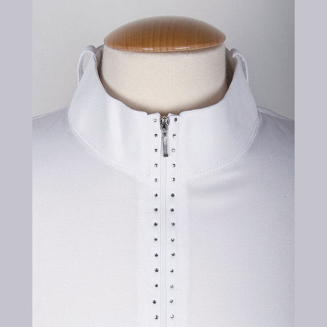 Wedstrijdshirt korte mouw met korte rits en crystallen langs de ritssluiting en plastron lussen