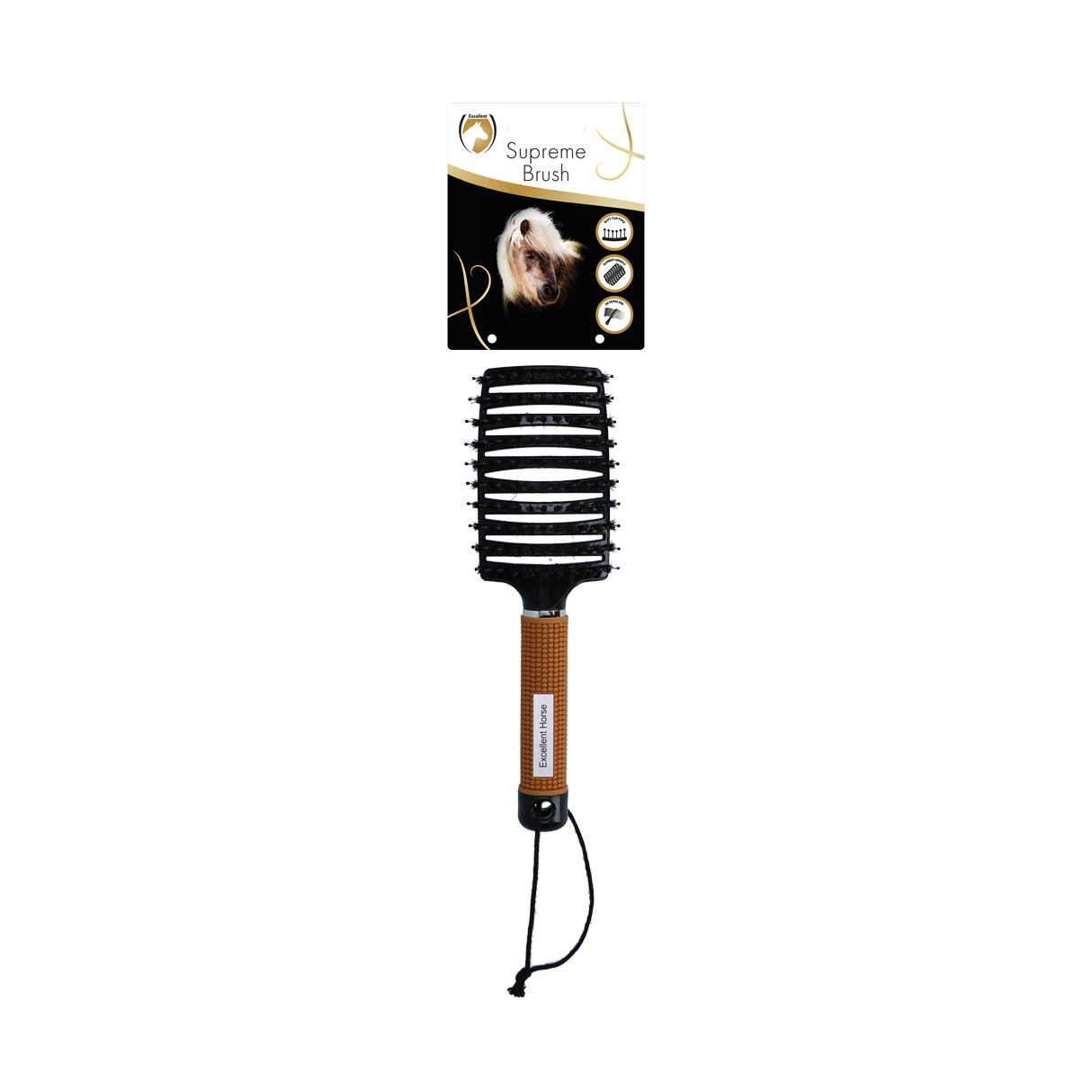 La brosse Excellent Hose Supreme élimine sans effort tous les nœuds de la queue et de la crinière et prévient les pointes fourchues.