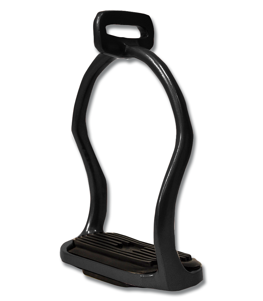 Tige courbée avec œillet d'étrivière à 90°. Semelles intérieures noires.