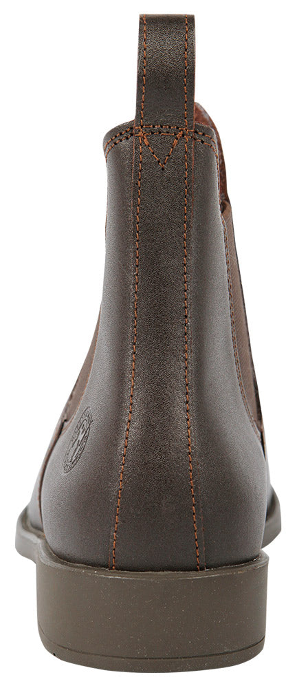 Lederen jodphur, gevoerd en met een vlakke rubberen ribbelzool.Voorzien van zeer comfortabele neopreen binnenzool welke zorgt voor schokabsorbatie en voorkomt wrijving.