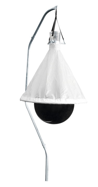 Le piège à taons capture les taons en trompant les femelles. La boule noire est chauffée par le soleil et se déplace légèrement d'avant en arrière au gré du vent.