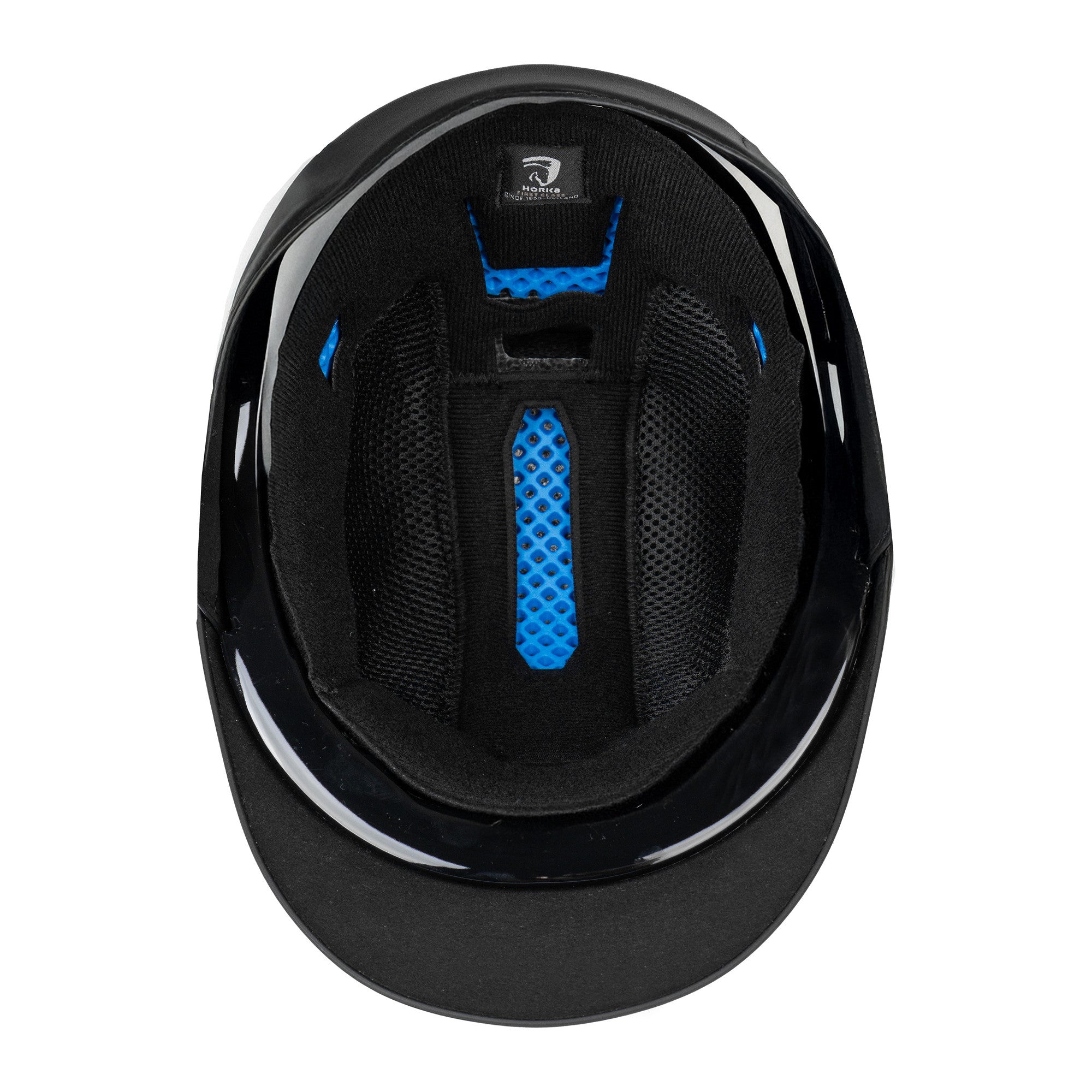 Casque de sécurité léger et élégant, doté d'une large visière et de détails pailletés. Technologie de réduction d'énergie ERT protégeant le cycliste des impacts linéaires et rotationnels. Caractéristiques produit : Certification EN1384:2023, technologie de réduction d'énergie ERT, visière large, ventilation optimale, harnais 4 points recouvert de cuir, doublure amovible et lavable, tissu pailleté et empiècements chromés. Matériaux : doublure EPS, coque ABS, harnais PP.