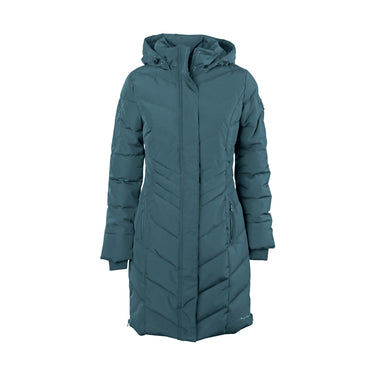Lange waterafstotende jas met een tweeweg ritssluiting en drukknopen, twee zakken met een ritssluiting, twee lange ritsen aan de zijkant met een flap eronder tegen de regen en een ophanglusje.
