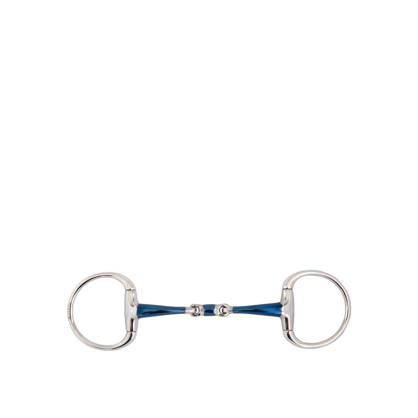 Deze dubbel gebroken bustrens is vervaardigd van massief roestvrij stalen ringen en een zacht stalen mondstuk gecombineerd met een sweet iron laagje op het mondstuk (blauw). De sweet iron coating op het mondstuk stimuleert de aanmaak van speeksel. Wanneer dit materiaal reageert met vocht, warmte en lucht zal het oxideren en een zoet smakende oppervlakteroest ontwikkelen. Dit helpt bij de acceptatie van het bit. Uiteindelijk verdwijnt de blauwe kleur, maar de smaak van het oppervlakteroest blijft.