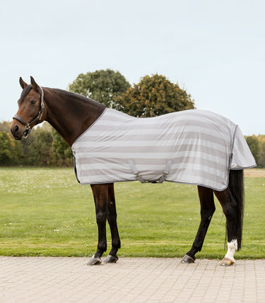Klassieke vliegendeken die effectief beschermt tegen vervelende insecten. Hij is uitgerust met afneembare, verstelbare kruissingels die een precieze aanpassing aan het paard mogelijk maken. Het heeft ook een staartflap, een diep bilkoord en een klittenbandsluiting onder een praktische T-sluiting.