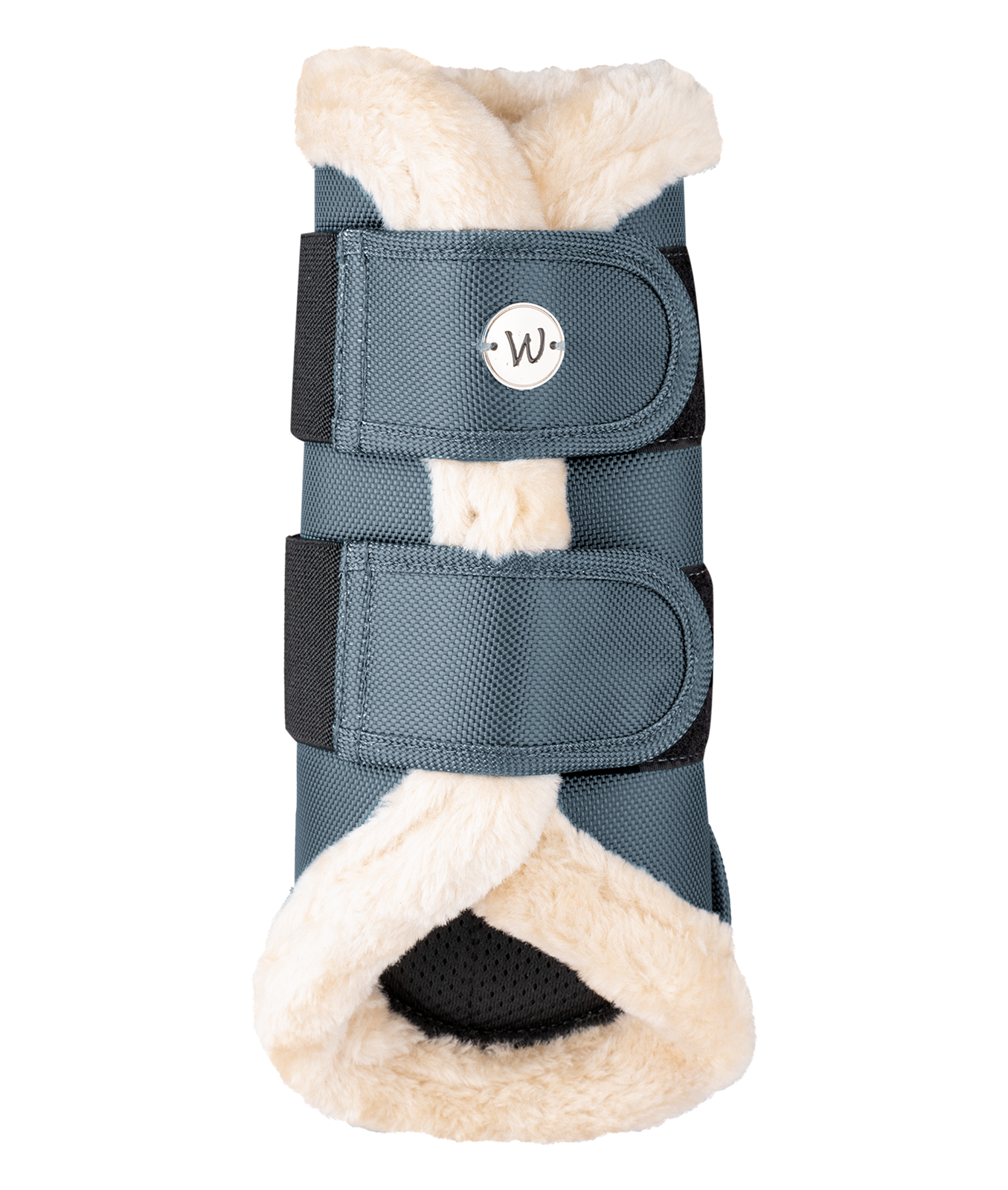 Dressage boot with breathable mesh on the inside. The outer material is in a robust 1680 denier material and provides good shock protection. The soft, shock-absorbing artificial fur trim ensures pleasant wearer comfort. With a small silver-coloured metal logo. Matches our Pegasus collection.