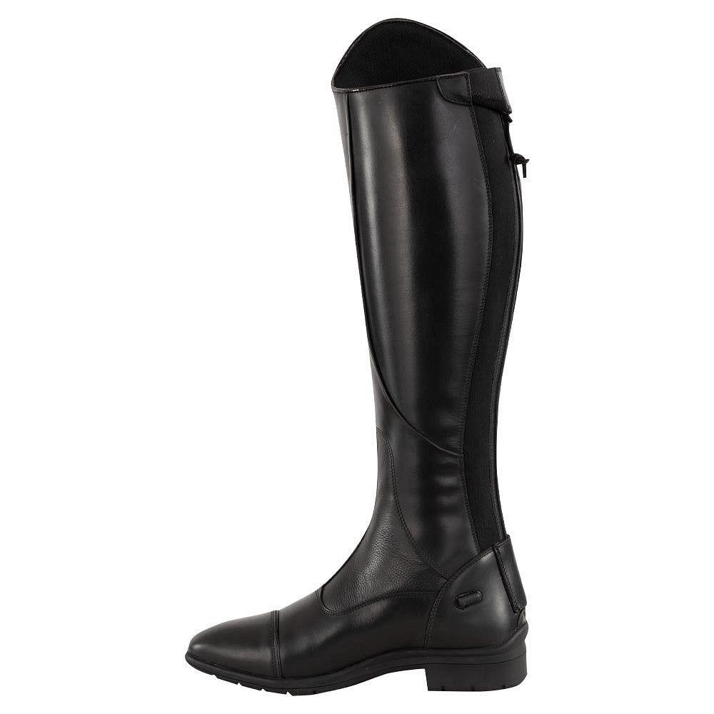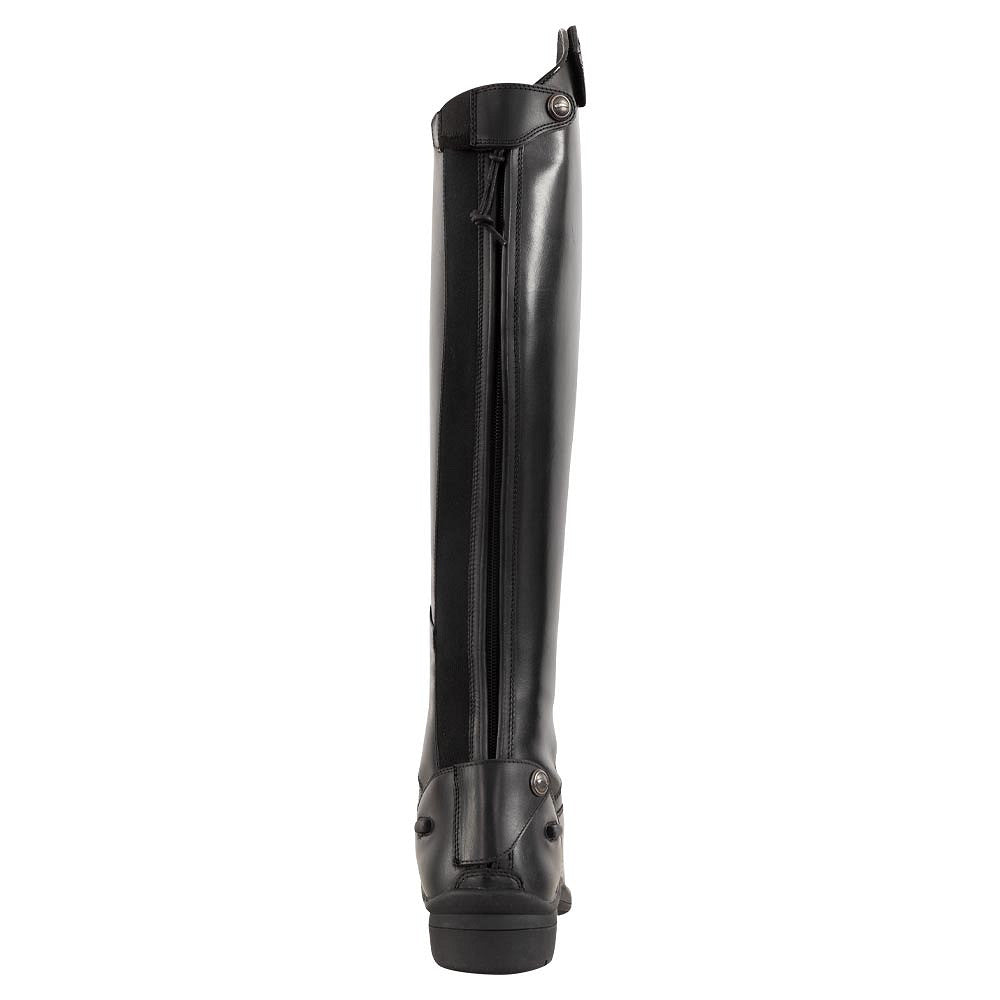 De rijlaars sluit mooi aan op voet en been vanwege de lange YKK-rits met verborgen elastiek erlangs. Op de voorzijde (bovenaan bij de wreef) bevindt zich een soepel inzetstuk van stretchleder voor extra comfort en bewegingsvrijheid. De binnenvoering is van anti-slip waxleder en de inlegzool heeft een anti-bacteriele toplaag voor een blijvend fris gevoel. De neus is afgewerkt met een subtiele, laklederen bies. De rubberen zool heeft een schoonloopprofiel, is stevig en absorbeert schokken. Tot slot beschikt de laars over twee sporenknopjes en is de rits voorzien van een ritsbeschermer.